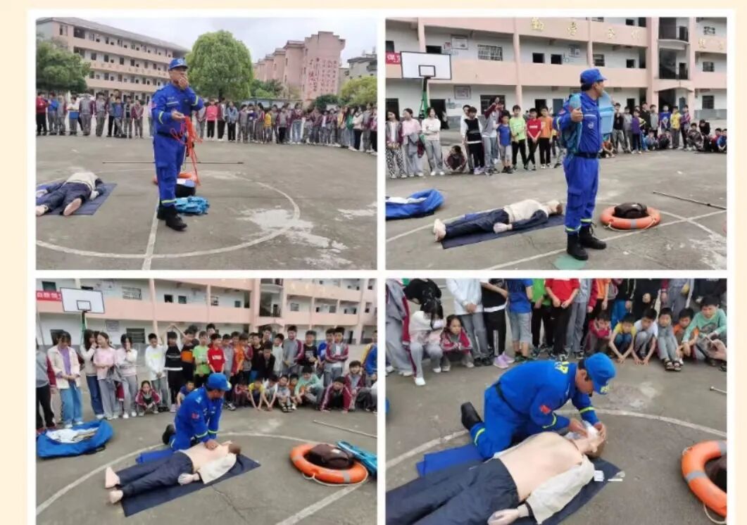 为让学生更直观地了解防溺水相关知识,蓝天救援队先后走进占圩中学、马圩小学进行防溺水知识宣讲教育活动,蓝天救援队的志愿者通过场景模拟的方式向同学们示范,现场进行心肺复苏等防溺水救护示范,同学们通过这种模拟教育,增强了防溺水知识和避险意识。