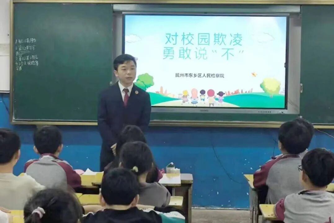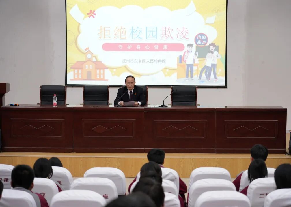 为进一步做好校园普法工作,预防校园欺凌事件发生,近日,东乡区人民检察院法治副校长走进校园开展预防校园欺凌法治宣讲。