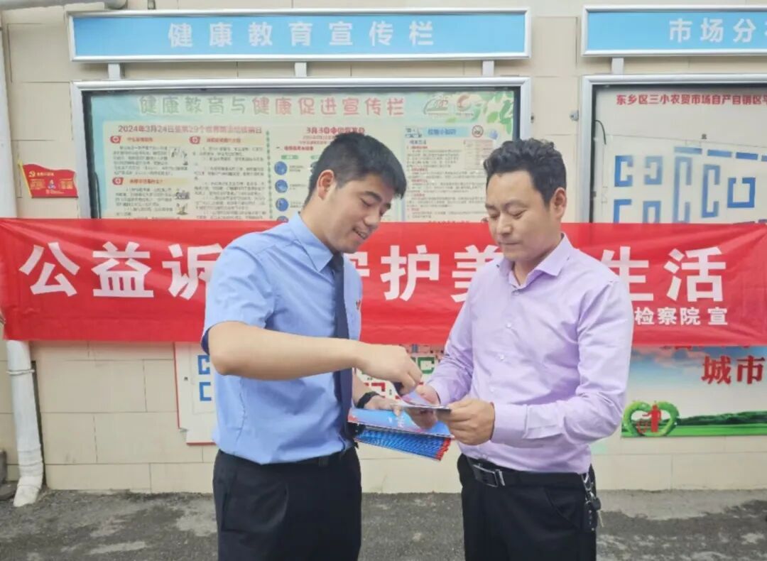 为充分发挥公益诉讼检察职能,进一步营造全社会共同保护公益的良好氛围,5月22日,东乡区人民检察院到三小农贸市场开展以“公益诉讼守护美好生活”为主题的普法宣传活动。