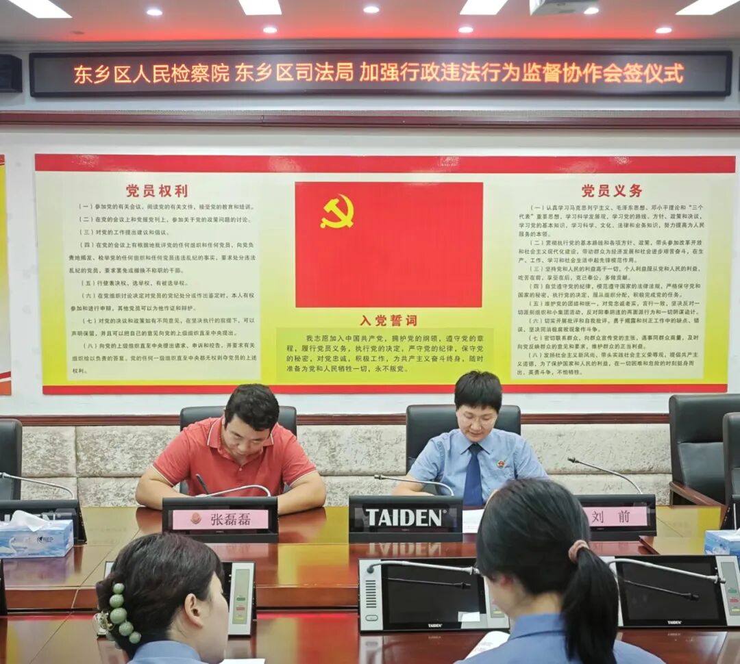 为深入贯彻落实《中共中央关于加强新时代检察机关法律监督工作的意见》精神,全面加强检察机关与司法行政机关的协作配合,提高行政检察监督和依法行政水平。8月30日,东乡区人民检察院、东乡区司法局联合会签了《关于加强行政违法行为监督协作实施意见(试行)》(以下简称《意见》)。