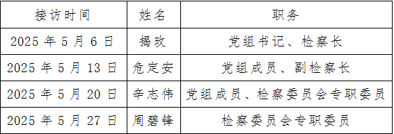 为深入贯彻习近平法治思想,践行新时代检察为民的工作理念,切实做细做实做深群众信访工作,推动案结事了人和,现将东乡区人民检察院2025年5月份检察长接访安排公告如下: