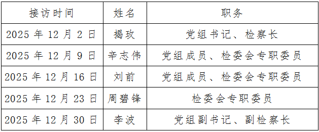 为深入贯彻习近平法治思想,践行新时代检察为民的工作理念,切实做细做实做深群众信访工作,推动案结事了人和,现将东乡区人民检察院2025年12月份检察长接访安排公告如下: