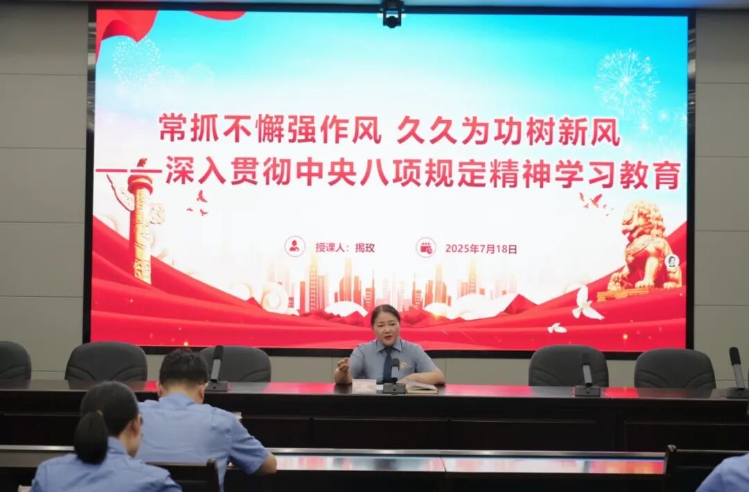 为扎实推进中央八项规定精神学习教育走深走实,持续推动全面从严治党向纵深发展,切实提升检察队伍的纪律作风和履职能力,7月18日,东乡区人民检察院党组书记、检察长揭玫以《常抓不懈强作风 久久为功树新风》为题,为全体党员干警讲授了一堂主旨鲜明、内涵丰富的专题党课。