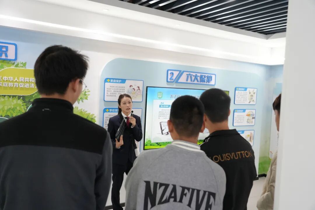 活动的第一站,未检干警引导帮教少年、监护人及司法社工共同步入“法治护航”展厅。干警结合生动图示与微视频,深入浅出地讲解了与青少年成长密切相关“六大保护”体系,阐释了“法律责任年龄”的意义,帮助他们真正理解行为与责任的对应关系,从而知边界、守底线。