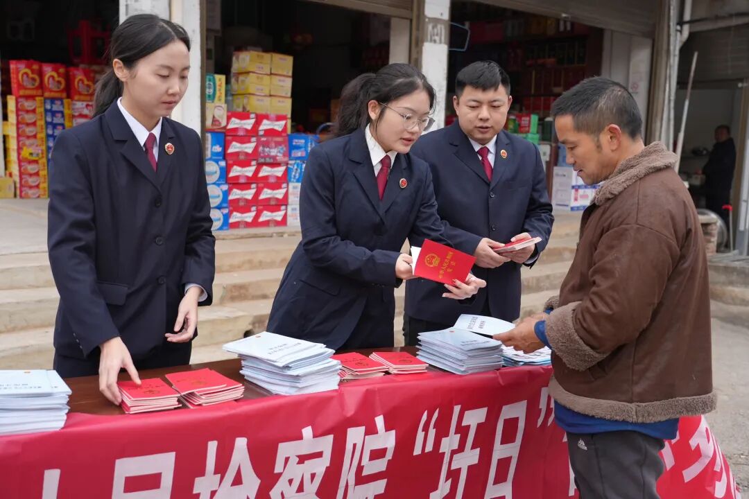 12月4日,趁着“圩日”人流密集之际,检察干警化身“普法摊主”,将法治宣传搬到邓家乡集市街头,开展“圩日普法”活动。干警们用通俗易懂的方言,向赶集群众普及宪法及民法典、反诈防骗等相关法律知识,发放宣传资料,现场解答群众法律问题,让法律知识伴着集市的“烟火气”,走进群众日常生活,实现“赶集学法两不误”。