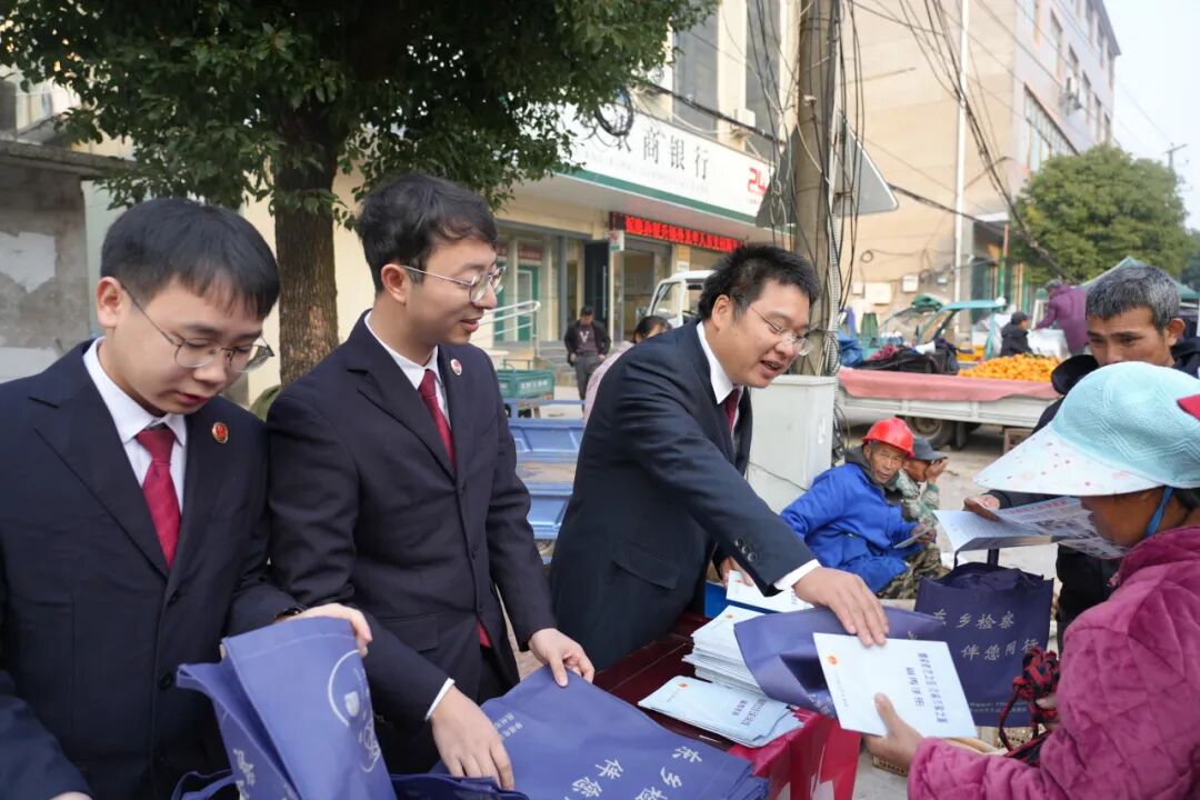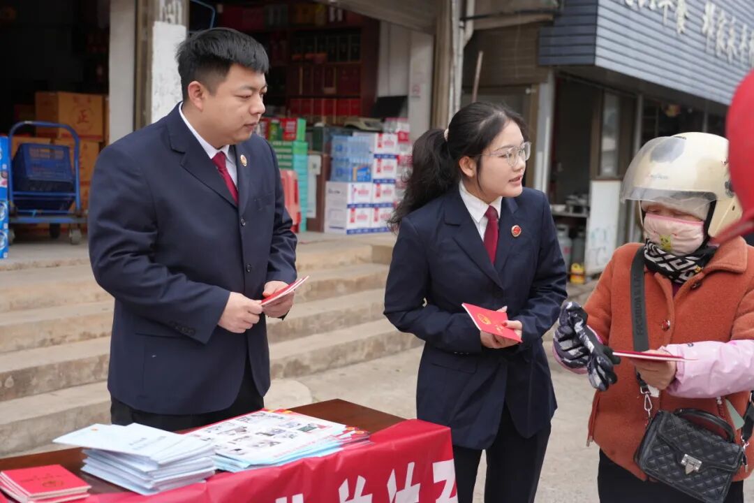 借助“圩日”人流密集的契机,检察干警化身“普法摊主”,在邓家乡集市街头开展普法宣传活动。干警们运用当地方言,向赶集群众普及宪法知识,详细讲解检察机关“四大检察”职能,同时宣传冬季森林防火、安全用电等安全常识,发放宣传资料,现场解答群众法律问题,让法律知识伴着集市的“烟火气”,走进群众日常生活,实现“赶集学法两不误”。