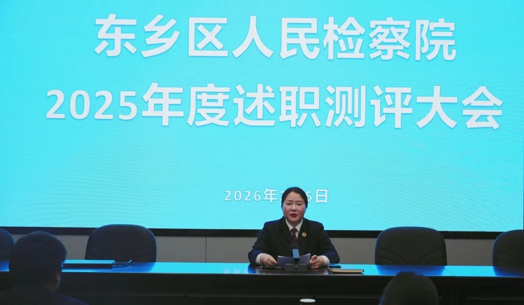为全面检视2025年度各项工作成效,系统谋划2026年检察事业发展蓝图,2月5日下午,抚州市东乡区人民检察院召开2025年度述职测评大会。院党组书记、检察长揭玫主持会议,全体检察人员参会。